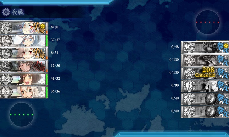 キラ付けはゲージ破壊後の艦娘をそのまま使っているので、cond値60~70前後くらいで、キラが切れた艦娘だけ2重キラにしました。