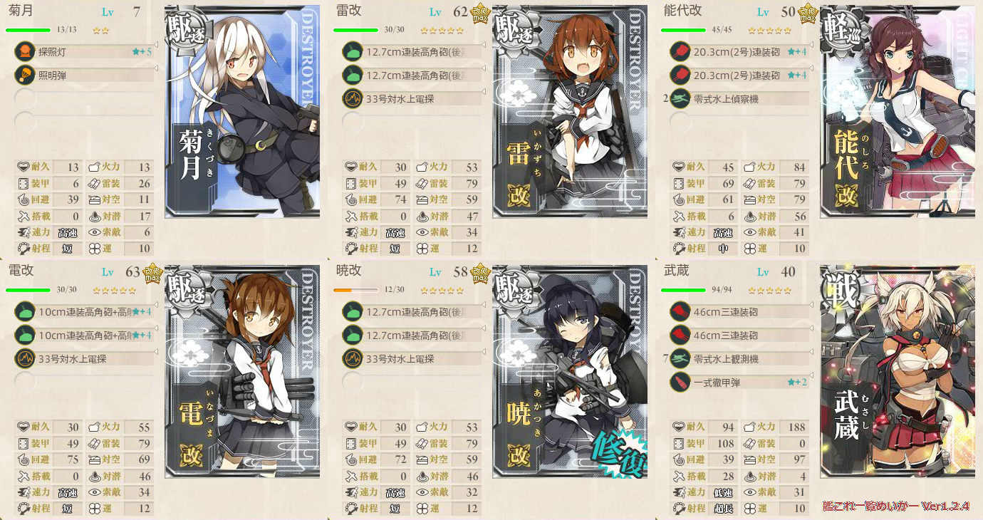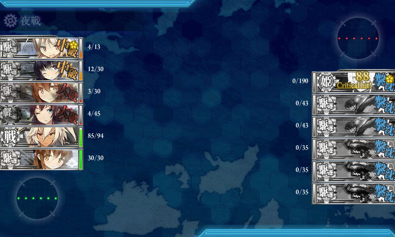 また、戦艦を入れても道中1戦ルートになるようなので、我が鎮守府ではラスダンで未改造の武蔵さんを投入してゲージを撃破!