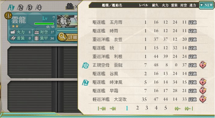 E-6は5-5を超える難易度だし、クリア報酬もおいしくないので、もう一人の北上様(Lv49)のレベリングをしながら出来るところまでやってみましょうか?