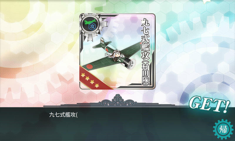 甲クリア報酬は試製甲板カタパルト・ネジ10個・勲章。