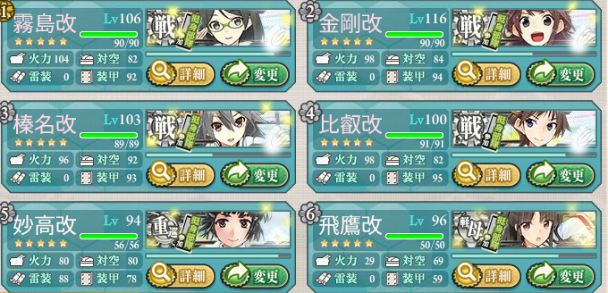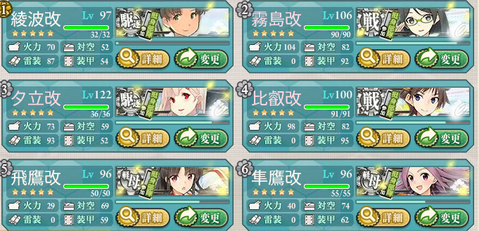 前衛支援はガチ、決戦支援は空母×2のエコ