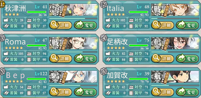 Italiaさん(試製41cm×2・夜偵・1式徹甲弾☆2)
