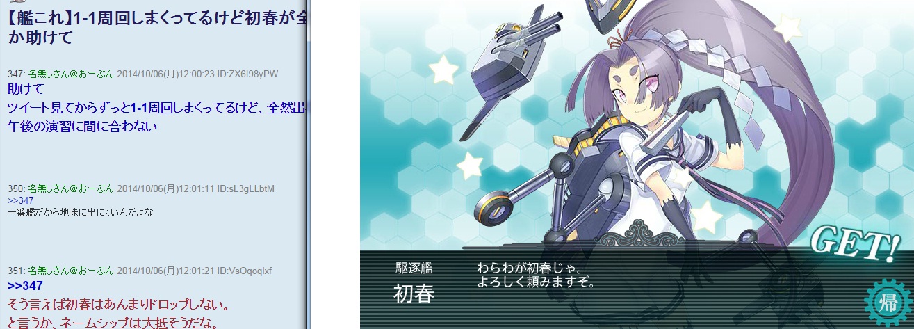 初春さんの話題を読んでいる時に、ドロップしたので笑っちゃいました^^;