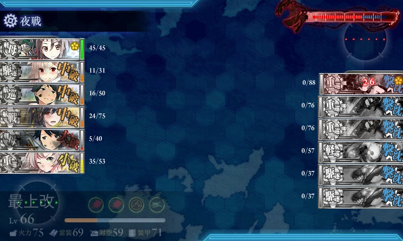 出し渋りせずに、大井さん(Lv81)に出撃してもらったのと、道中支援をフル活用したことが効を奏したと思います。