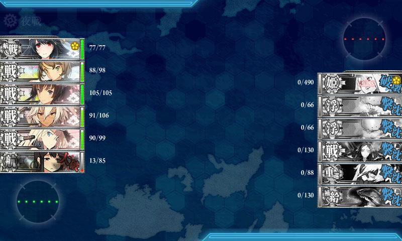 戦艦の装備は全員「主・主・偵察機・三式弾」(扶桑さんは瑞雲12型)で、空母は置き物です。
