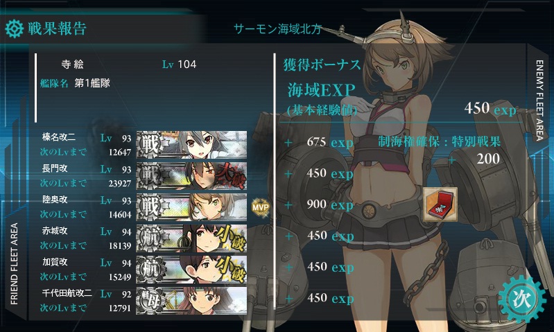 こちらはボス戦で大破艦が出るも、とくに問題なく勝利。