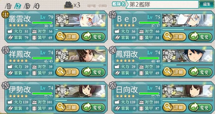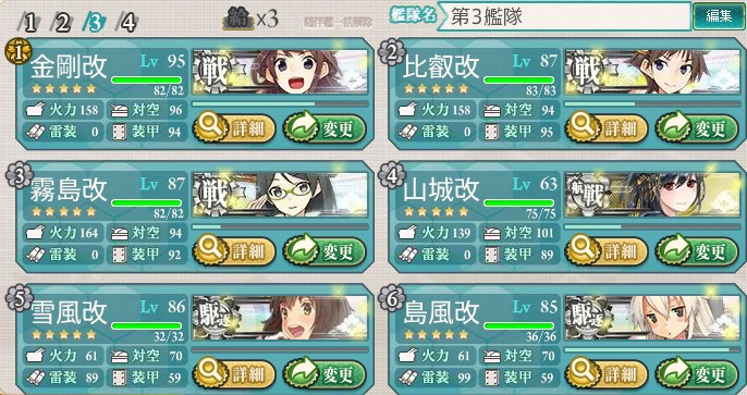 朝の貴重な時間にキラキラを付け直す余裕などありませんので、金剛型4隻と空母2隻で出撃。