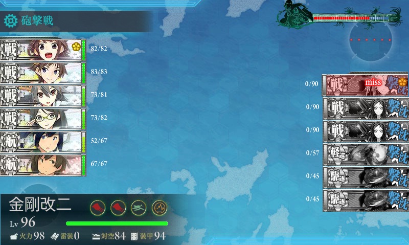 大和さんを投入していないので、榛名さんのカットインのみが頼りでしたが、運良く榛名さんがボスを狙ってくれました。