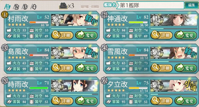 とりあえず水雷戦隊で1回出撃してみて、火力不足と判断すれば、上ルートでいこうと思います。
