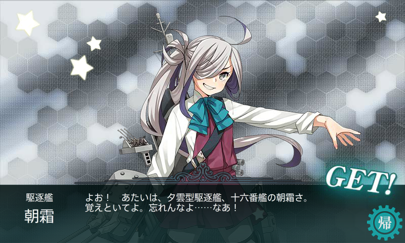 朝霜さんは好みの艦娘さんなので、何とかゲットしたいと思います^^;