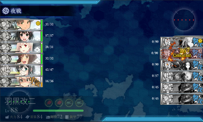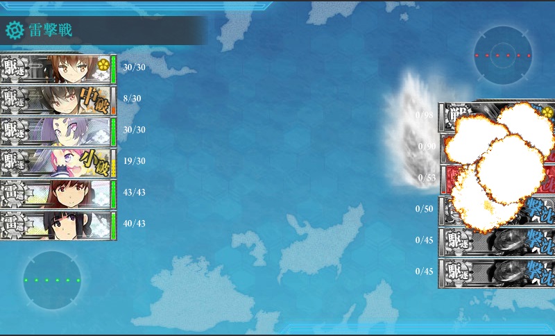 まあ、ボス戦に必ず戦艦がいるので、ボスに辿り着きさえすれば電巡2隻だけでもS勝利が取れるはずなので、駆逐艦の皆様は1戦目で大破しなければそれでOKです^^;