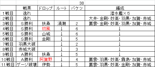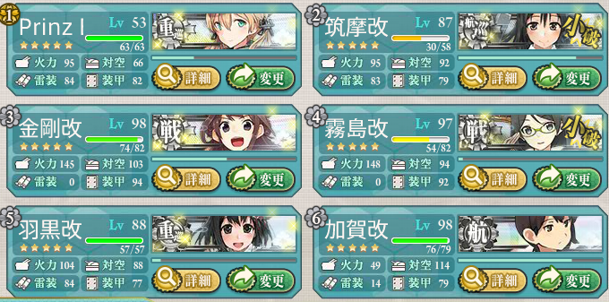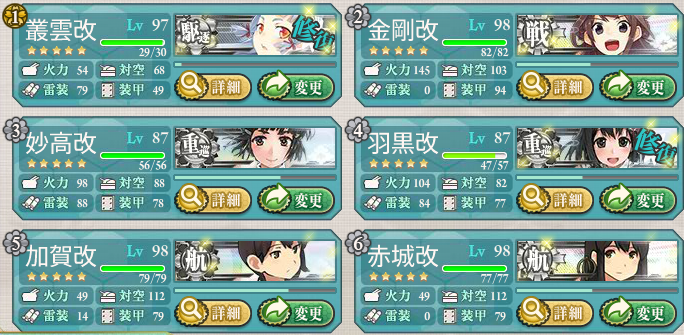 途中1回だけ金剛さんを霧島さんにチェンジしましたが、ルート固定には、ほぼ影響はないと思われます。