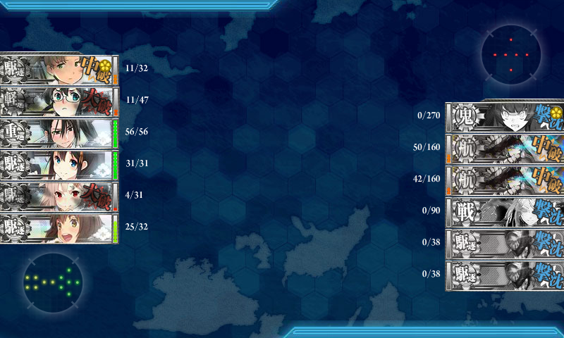 E-4ラストダンス1回目でT字有利を引いて、支援艦隊が3隻を大破!
