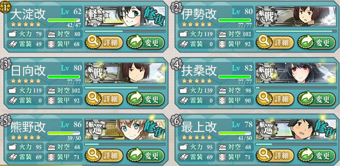 先週、ウィークリー任務で5-2へ出撃していたのですが、未だかつてないほど大破撤退が多かったです><