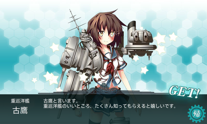 しかし、第六戦隊任務に必要な「古鷹」「加古」「青葉」「衣笠」のうち、衣笠さんしか育てていません><