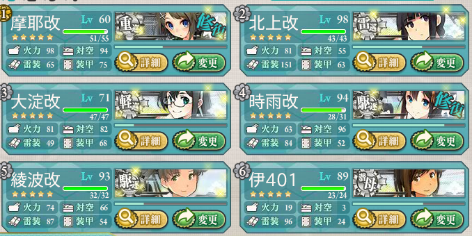 北上さんLv93(主・主・甲標的)