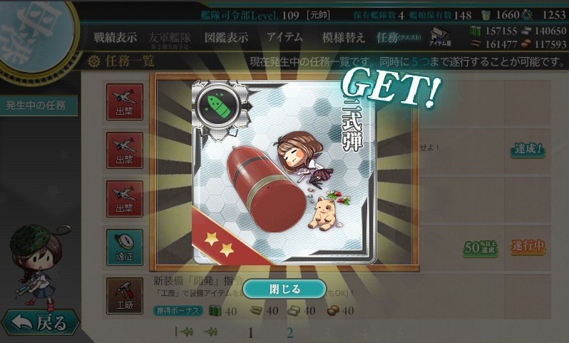 報酬は「3式弾」と「25mm三連装機銃」・・・。