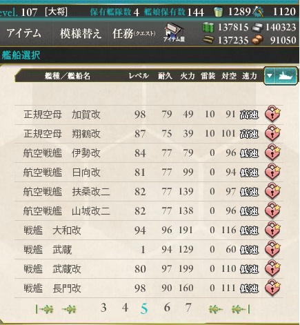 せっかく来てくれたのだから、高難度海域用に2隻目の武蔵さんも育てます。