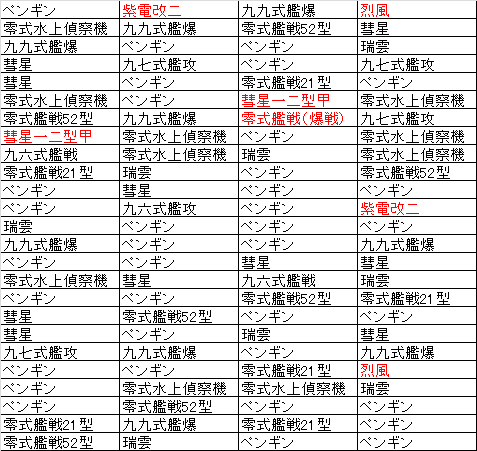 ところで、このレシピの良いところは、ペンギンが多いので無駄に開発資材を消費しないことと、艦攻が出ないこと。(九七艦攻は除く)
