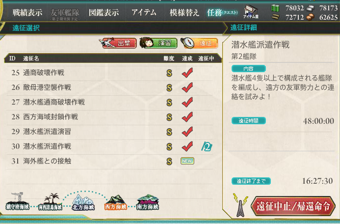 司令レベル(Lv99)が低いのか、旗艦レベル(赤城さんLv73~75)が低いのか、それとも開発運が無いだけなのか・・・。