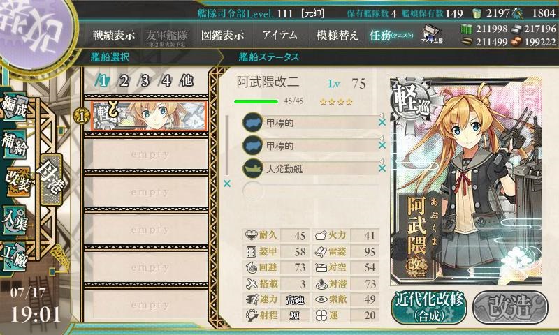 来月の5-5が初陣になると思うので、それまでに近代化改修を完了しておきましょう^^
