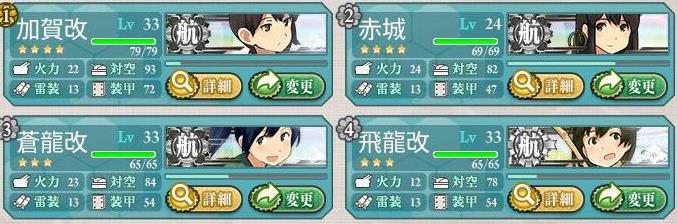 加賀さん、赤城さん、蒼龍さん、飛龍さんの2隻目を育てています^^