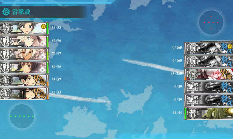 それから、支援艦隊も安定して2~3隻撃破してくれるので、レ級・エリレに攻撃が向く確率が上がったことも大きな助けになっています^^