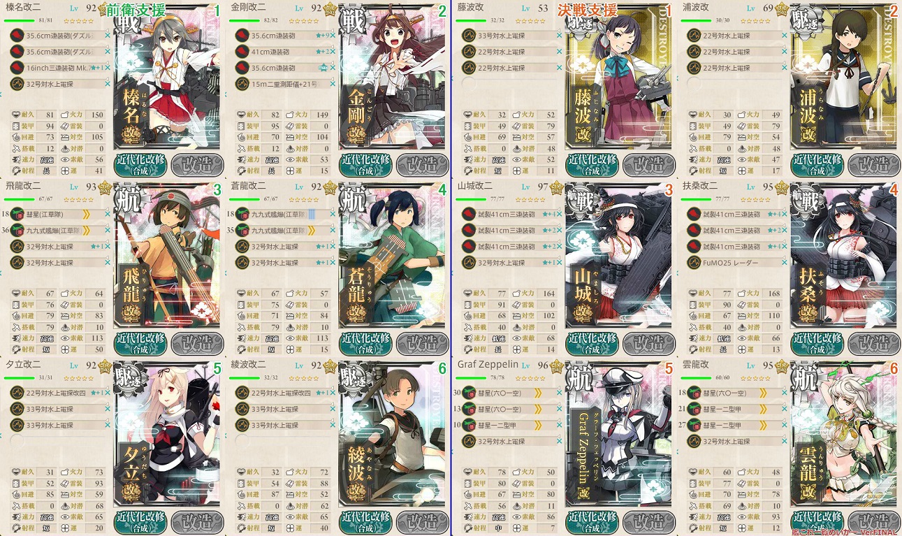 攻略編成と支援艦隊は以下のとおり(クリックで拡大できます)
