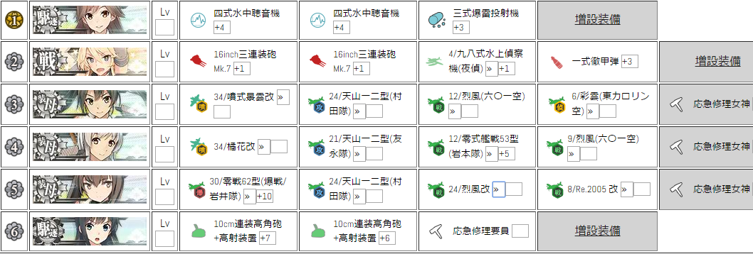 橘花改や噴式景雲改があれば、開幕の噴式強襲で駆逐艦を1~2隻沈めてくれる可能性があるので、ぜひ搭載したいところです^^